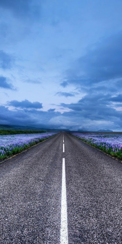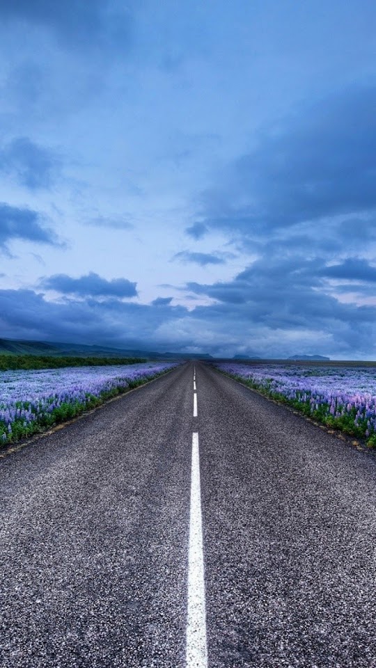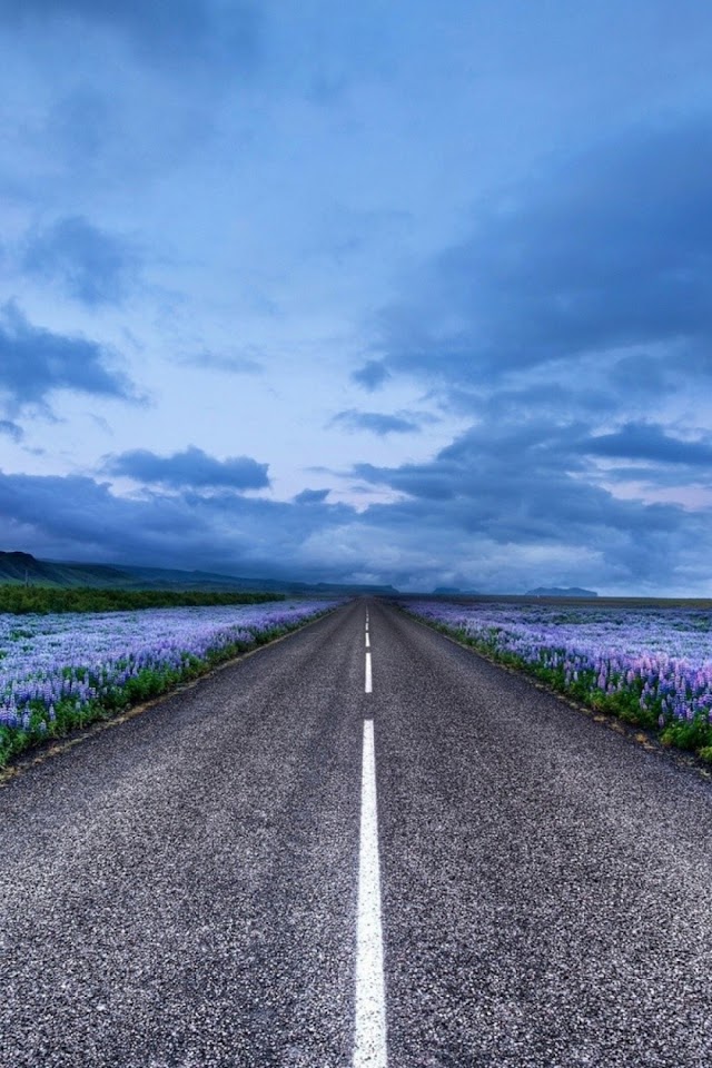 Click here to download 640x960 pixel Blue Flower Field Highway Galaxy Note HD Wallpaper