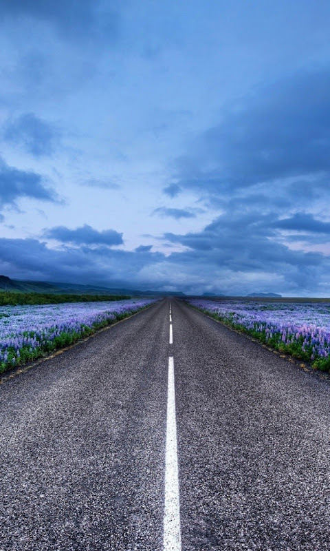 Click here to download 480x854 pixel Blue Flower Field Highway Galaxy Note HD Wallpaper