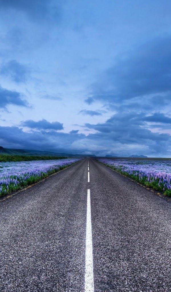 Click here to download 600x1024 pixel Blue Flower Field Highway Galaxy Note HD Wallpaper