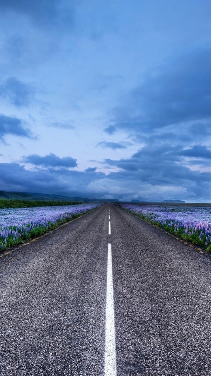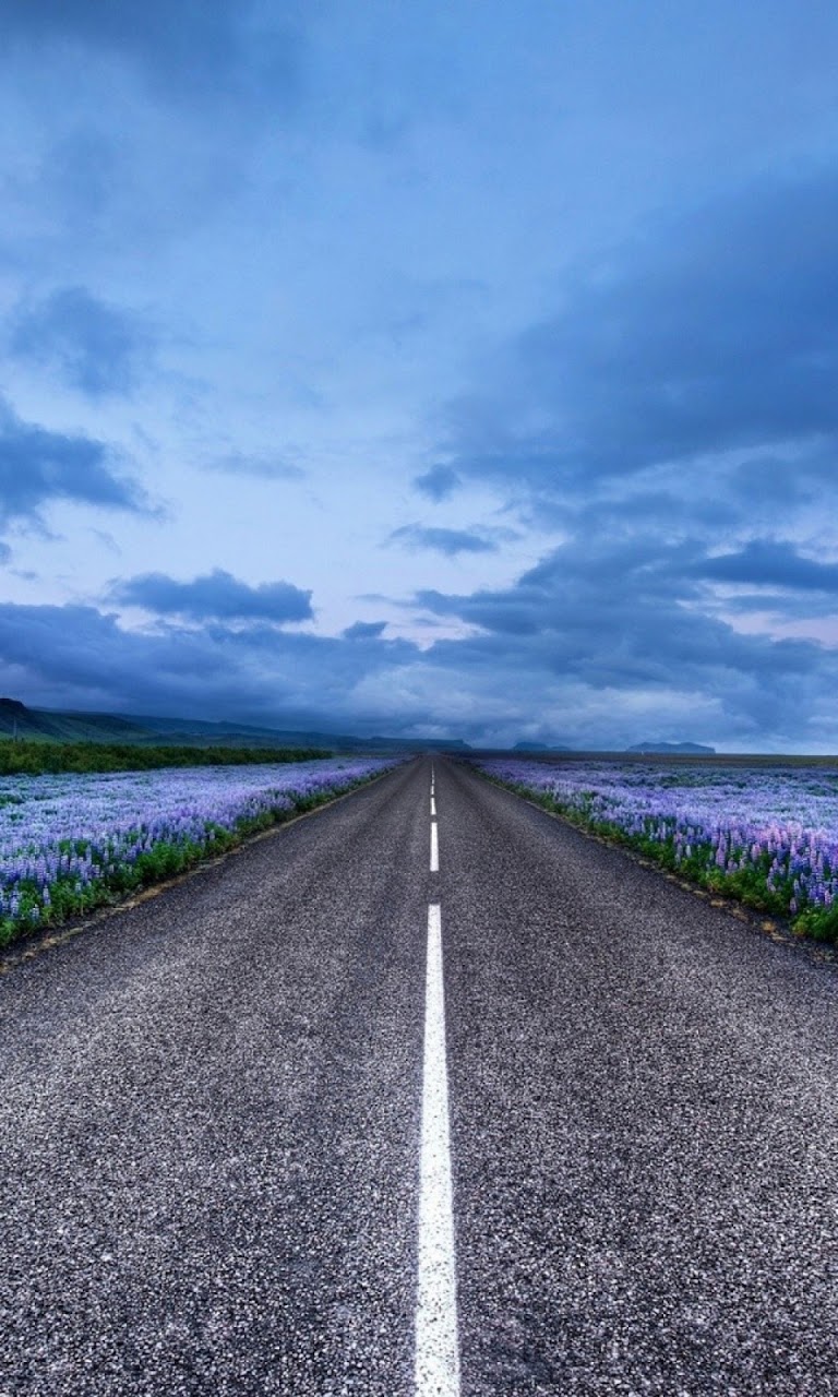 Click here to download 768x1280 pixel Blue Flower Field Highway Galaxy Note HD Wallpaper