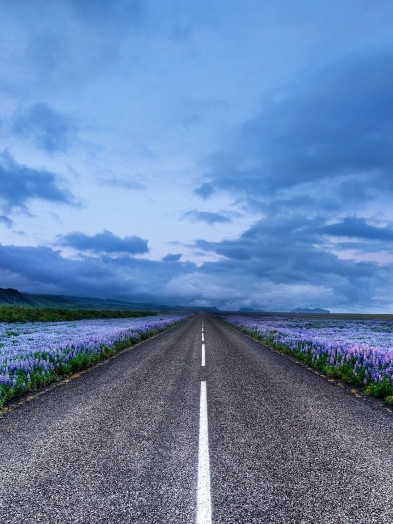 Click here to download 768x1024 pixel Blue Flower Field Highway Galaxy Note HD Wallpaper