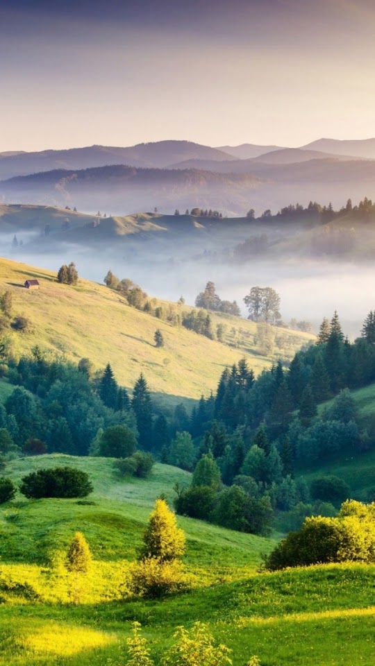 Click here to download 540x960 pixel Mountains Hills Pine Forests Fog Haze Galaxy Note HD Wallpaper