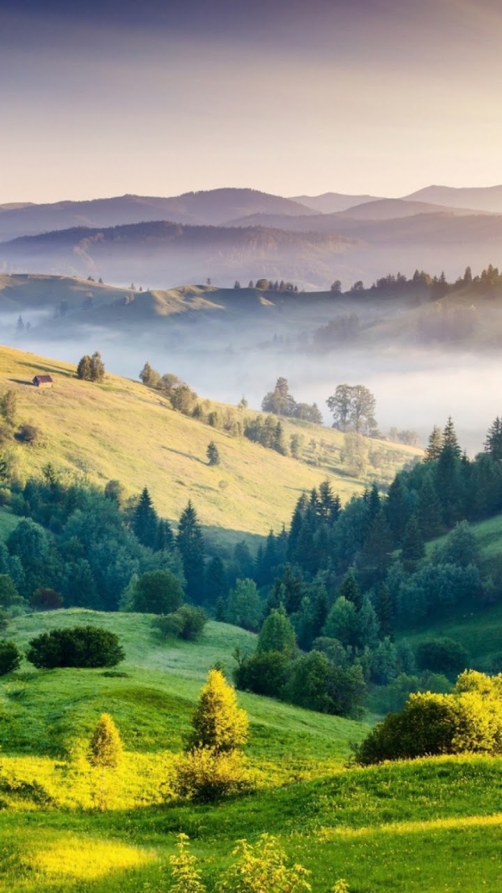 Click here to download 640x960 pixel Mountains Hills Pine Forests Fog Haze Galaxy Note HD Wallpaper
